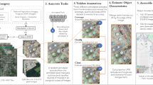 Based on the related research ideas of petrophysical models, the Labelme labeling principle is analyzed, and the semi-automatic labeling module (SALM) is designed to complete the preliminary labeling of each component of thin section images15,16. SALM shifts the focus of geological experts from original “annotation” to “quality detection”, reduces workload, saves the labor cost, and achieves generation and semi-automatic annotation of thin section images. Based on a small number of manual annotation results, the SALM annotation module converts the RGB pixel values of various components in thin section images to YUV color description through the color space conversion mechanism, and calculates the main distribution interval of each component Y, U and V based on the mean value of single component Y, U and V to provide a basis for the edge judgment of new images. By traversing the newly generated thin section images, the Y, U and V components of each pixel are obtained and compared with the main distribution interval respectively to determine the edge position coordinates of each component. The image coding mechanism was designed to convert the cast thin section image into serialized data, and generate the Json annotation information file; then the Json file generated by the thin section image is fused with the image, to complete the image data fusion; Finally, the semi-automatic image annotation is completed by parsing the Json annotation information file. The details are described below.