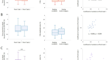 Before the TI run, the participants were acquainted with the tactile sensations produced by vibration of proximal parts of the index, middle, ring and little fingers. Additionally, we evoked tactile sensations with a brush of these fingers and the palm and gave the opportunity to practice TI in different ways (e.g. imagery brushing at different locations of palm and fingers). The brush was used to acquaint subjects with a variety of tactile sensations. During the TI run, participants were asked to mentally reproduce the tactile sensations as vividly as if they were emerging from the skin of their fingers12,16. The participants were instructed not to look at the hand and instead direct their gaze to the fixation cross. During the TS task, participants were instructed to attend to skin sensations at the base of the middle finger produced with a coin-sized vibrating motor. During the kMI task, the participants mentally reproduced the kinesthetic sensations associated with performing finger movements. The finger movements were flexions and extensions at the metacarpophalangeal joint—the action often called finger tapping. We chose this specific type of movement based on our previous work, where participants learned it with ease and comfortably performed it repetitively20,21. Prior to the kMI run, the participants practiced performing finger movements at various speeds and executing isometric contractions and memorized the kinesthetic sensations associated with the movements, including muscle contraction, tendon tension, and joint position. The imagined finger movements were to be performed in a random order21.