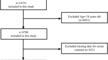 In this study, we used serum PTH as the outcome variable related to serum cotinine. Serum PTH levels are influenced by various factors. Based on previous related articles, we selected the following covariates to enhance the robustness of the association16,17,18. The categorical variables included gender, race/ethnicity, education level (Lower than high school/High school/College or above), diabetes history (Yes/No/Borderline), hypertension history (Yes/No), alcohol consumption (Yes/No) and smoke (Yes/No). Information on diabetes history, hypertension history, and alcohol consumption was obtained through questionnaires. Alcohol history was defined as consuming more than 12 units of alcohol in the past year. Smoking is defined as having smoked at least 100 cigarettes in life.