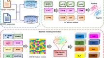 To evaluate the contribution of variant ML methods at the different levels of each antibodyāantigen interaction, we performed a comparative analysis on different feature extraction schemes and ML methods. In the case of the feature extraction schemes, we applied three types of feature descriptors addressing multiple aspects, including 12 sequence-based, 7 atom-based, and 12 fingerprint-based feature descriptors (Supplemental Tables 2ā4) following the previous studies43,44,45. The CDR-H3 and epitope sequences were concatenated and encoded into a single embedding of an antibodyāantigen complex using our in-house Python-based code. Data normalization was performed to transform the input features into the same scale using MināMax Scaler. Afterwards, the scaled training set was employed to train ten different ML algorithms: extreme gradient boosting (XGB), support vector machine (SVM), random forest (RF), partial least squares regression (PLS), multilayer perceptron (MLP), logistic regression (LR), linear support vector classification (LN), extra tree (ET), decision tree (DT), and k-nearest neighbours (KNN) classifiers. The algorithm selection was guided by considerations of accuracy, computational resources, and interpretability to derive the optimal predictive model for the dataset. Simpler models such as PLS, LR, LN, and DT provide easier interpretability, whereas more complex models like XGB, SVM, RF, MLP, ET, and KNN offer greater effectiveness in capturing intricate patterns within high-dimensional data spaces and deliver superior predictive capabilities24. All models are designed specifically for binary classification. Hyperparameter searching was performed as described in Supplemental Table 5. Herein, we evaluated and compared the performance of the developed ML methods based on tenfold cross-validation (CV) and independent tests. We demonstrated ML performances based on five metrics: accuracy (ACC), sensitivity (Sn), specificity (Sp), Matthewās correlation coefficient (MCC), and area under the ROC curve (AUC), as previously described43,46. The ML algorithm with the greatest AUC for predicting NAbs was selected to screen a panel of unseen antibodies in the ML screening step. Model comparison, analysis and evaluation were performed using Python script 3.8 (all codes; available at GitHub).