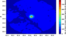 We extract the archived data of King 18 from Gaia (Gaia DR3)27. This database consists of positions on the sky (\(\alpha \), \(\delta \)), proper motions (\(\mu _{\alpha }\)cos\(\delta \), \(\mu _{\delta }\)), and parallaxes with a limiting magnitude of G = 21 mag. Gaia DR3 provides astrophysical parameters for many celestial objects derived from parallaxes, broadband photometry, and mean radial velocity spectra. In Gaia DR3, the trigonometric parallax errors are 0.02-0.07 milliarcsecond (mas) for sources at G \(\le \) 17 mag, 0.5 mas for G = 20 mag and reach 1.3 mas for G = 21 mag. The proper motion errors are 0.02-0.07 mas \(\hbox {year}^{-1}\), reaching up to 0.5 mas \(\hbox {year}^{-1}\) for G = 20 mag and 1.4 mas \(\hbox {year}^{-1}\) for G = 21 mag. Moreover, it contains G magnitudes for around 1.806 billion sources and \(G_{BP}\) and \(\hbox {G}_{{RP}}\) magnitudes for around 1.542 billion and 1.555 billion sources, respectively. Fig. 2 shows the number surface density of King 18 from Gaia DR3 and Fig. 3 shows the proper motions \(\mu _{\alpha }\)cos\(\delta \), \(\mu _{\delta }\) and parallax \(\varpi \) histograms.