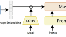 Inspired by SAM training, the bounding box prompts remain unchanged. As for the point prompts, our method employs a technique that amalgamates random sampling with iterative sampling. In the initial phases of model training, click prompts are commenced with random sampling, aiding the model in the early discernment of foreground and background regions within the image. Subsequently, to boost the model’s accuracy and adaptability, an iterative sampling mechanism is incorporated. In this regimen, each click iteration is informed not solely by the model’s extant predictions but also by inaccuracies identified in prior outputs, thus directing new clicks toward these discrepancies. This iterative sampling approach is crafted to mimic real-world scenarios where users incrementally refine model forecasts through ongoing interaction. Via persistent iteration, the model progressively enhances its comprehension of intricate image constituents and segmentation fidelity.