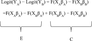 The component ‘E’ is the difference attributable to endowment change, usually called the explained component. The ‘C’ component is the difference attributable to coefficient (behavioural) change, usually called the unexplained component. The model structure for the decomposition analysis was: