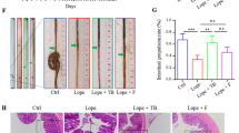 Due to STC rat yielded findings that closely corresponded to clinical symptoms of constipation18, the LOP-induced STC model was adopted to evaluate the potential interrelation between progression of STC and gut microbiota19,20,21. In this study, the intestinal transit rate of rats in the ABX and the ABX + LOP groups was not significantly different from that of the CON group, and fecal water content in the ABX and ABX + LOP groups was significantly higher compared to the CON group. Loperamide can inhibit the contraction of intestinal smooth muscle and reduce intestinal peristalsis, however, in this research, we found the ABX + LOP group has not appeared STC. The above results indicated that eliminating major gut microbiota could hinder the establishment of the STC model. This prompts speculation that the emergence and advancement of STC might be intricately linked to some gut microbiota.