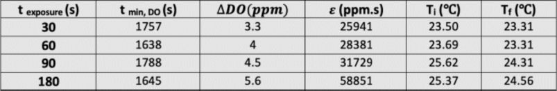 Table 1 Resulting data for the effect of exposure time in DMEM medium at the distance of 7 mm.