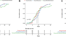 A total of 60 (8.4%) deaths were recorded, including 40 (9.7%) in the NR group and 20 (6.6%) in the FNC group (P = 0.14) within 28 d after antiviral initiation. The median duration from the initiation of drug administration to death was 15 (6–20) d and 14 (7–20) d in the NR and FNC groups (P = 0.31), respectively. The univariate logistic regression analysis revealed no significant association between different antiviral therapies and 28-d mortality risks (odds ratio [OR] 0.65, 95% confidence interval [CI] 0.37–1.1, P = 0.14). The association remained non-significant in the age- and sex-adjusted model (OR 0.74, 95% CI 0.41–1.3, P = 0.31) and multivariate model (OR 0.78, 95% CI 0.40–1.5, P = 0.45) adjusted for continuous variables, including age and interval between symptom onset and antiviral initiation, and categorical variables, including sex, diabetes, cardiovascular disease, chronic kidney disease, baseline respiratory support modes, and therapy with corticosteroid, tocilizumab, and baricitinib. The mortality rate of the 438 patients included after matching was 7.8% and 8.2% in the FNC and NR groups, respectively (P = 0.86). The difference in 28-day mortality risk remained non-significant between the groups (OR 1.01, 95% CI 0.44–2.3, P = 0.98) (Table 2).