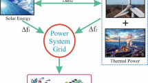 where \(\varphi_{solar}\) denotes the solar insolation (in W/m2), ƞ denotes the conversion efficiency of the PV panel, \(T_{a}\) denotes the surrounding temperature and S denotes the PV area (in m2). Based on the model from56, a practical output power for PV has been developed in this study to simulate its intermittent characteristics. In addition, for PV and wind plants, a first order TF is utilized. The PV system modeling description \(G_{PV} \left( s \right)\) is as follows55.