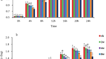 As an important factor affecting the appearance quality of fruits and vegetables, color is an indicator to evaluate the quality of fresh-cut fruits and vegetables29. As shown in Fig. 1B, the effect of acetic acid on reducing browning degree of fresh-cut lotus root was significant during storage. It was indicated that acetic acid could inhibit the yellowing and maintain the eating quality and market acceptability of the product, as well as ClO211. And the inhibition effect of 1.8% acetic acid was better than 5%. When the storage time was more than 4 days, the effect of ozone on browning inhibition was little or no, but that of 0.3 mg/L ozone was better than 0.6 mg/L.