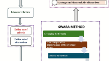 For subjective weighting model, Keršuliene et al.40 pioneered the idea of “stepwise weight assessment ratio analysis (SWARA)” that has lower computational complexity compared to some other methods. During the process of criteria weight computation, the SWARA model estimates the decision-making experts’ (DMEs’) view related to the importance ratings of criteria. Salamai41 incorporated the SWARA and the VIKOR models for the purpose of ranking risks of green supply chain with neutrosophic information. Ayyildiz42 developed an innovative Fermatean fuzzy SWARA model for prioritizing the indicators to attain the goals of sustainable development. Further, Stevic43 applied the fuzzy SWARA for the assessment of mutual significance of criteria. In addition, they drawn some negative conclusions based on an objective criticism using the fuzzy SWARA model. Pandey and Khurana44 studied a hybrid PFSs-based SWARA-COPRAS model for mitigating the risks of industry 4.0. Since its appearance, several researches have been presented regarding the SWARA method45,46.