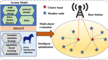 By considering the sensor node density, node energy, distance between CH nodes and BS, as well as inter-cluster information, an optimal cluster head selection algorithm is developed38. Furthermore, the dragonfly algorithm is employed, along with local search optimization and global search optimization, to design a loop-free routing solution for wireless sensor networks. To address the issue of IWSN cluster routing, a novel levy flight strategy and chaotic optimization strategy are adopted29. Based on intra-cluster distance, BS distance, CH nodes energy, and CM nodes energy, a new and efficient IWSN clustering routing model, LCPSO-CRP, is proposed, aiming to reduce network energy consumption and prolong network lifespan. An optimized algorithm for CH election in IoT-supported WSNs, named OptGACHE, has been introduced to address the limitations of IoT devices typically characterized by finite battery capacities and the infrequency of charging39. The algorithm incorporates four distinct criteria-node density, distance, energy, and the capability of heterogeneous nodes-to formulate a fitness function. This approach is intended to optimize intra-cluster distance, systematically harness node energy, reduce hop counts, and encourage the selection of highly capable nodes as CHs. The APTEEN routing protocol has been enhanced by integrating genetic algorithms and fruit fly optimization algorithms to mitigate issues of uneven network energy consumption40, premature node failure, excessive unnecessary energy expenditure, and suboptimal network coverage in wireless sensor networks. The study introduces additional selection factors for cluster head determination, including residual energy, distance to the base station, distance to the network’s geometric center, and node degree. The protocol pioneers the use of both genetic algorithms and fruit fly optimization algorithms for the selection of cluster heads, followed by a secondary selection process based on a density-adaptive algorithm.