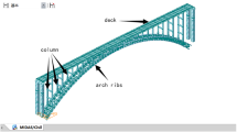 This study uses the Yangxin Expressway Yellow River Grand Bridge as the engineering context and focuses on a concrete continuous beam bridge with a main span of 120 m + 120 m + 120 m. A three-dimensional finite element model has been constructed, as shown in Fig. 4. The main beam features a single-box single-cell box-section, with a top slab width of 16.56 m, a bottom slab width of 8.5 m, and a top slab cantilever length of 4.03 m. The longitudinal reinforcement uses diameter Φ20mm rebar. Due to the bridge’s symmetry, the study only examines the results for Pier 1 (the left pier) and Pier 2 (the middle pier on the left span).