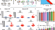 The human connectome is described as a structural network of \(N=324\) nodes (i.e., cortical brain regions), linked with symmetric and weighted connections obtained from DWI scans and reconstructed with spherical deconvolution26,27. The weights of the connectivity matrix, \(W_{ij}\), describe the connection density, i.e, the number of white matter fiber tracts connecting a given pair of regions of interest (ROIs) normalized by the product of their average surface and average fiber length28. The ROIs are derived from a functional atlas of the cerebral cortex following Gordon et al parcellation29 (we refer to Table 3 for the community assignments of ROIs within resting state networks (RSNs) and their corresponding MNI coordinates).