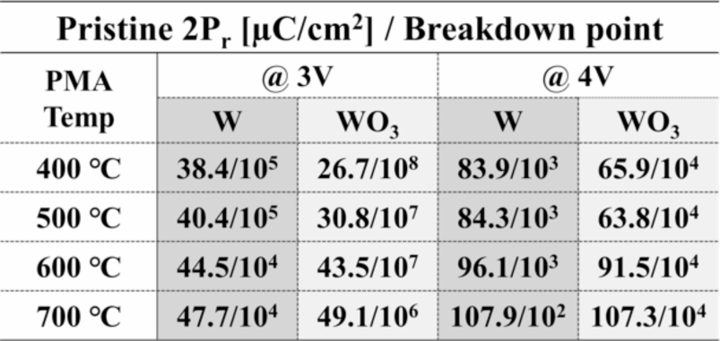 From: Oxygen reservoir effect of Tungsten trioxide electrode on endurance performance of ferroelectric capacitors for FeRAM applications