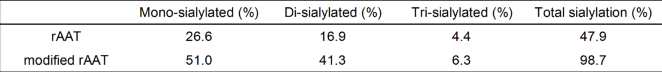 Table 2 Relative abundances of sialylated glycans in rAAT and after it has been modified with bacterial sialyltransferase.