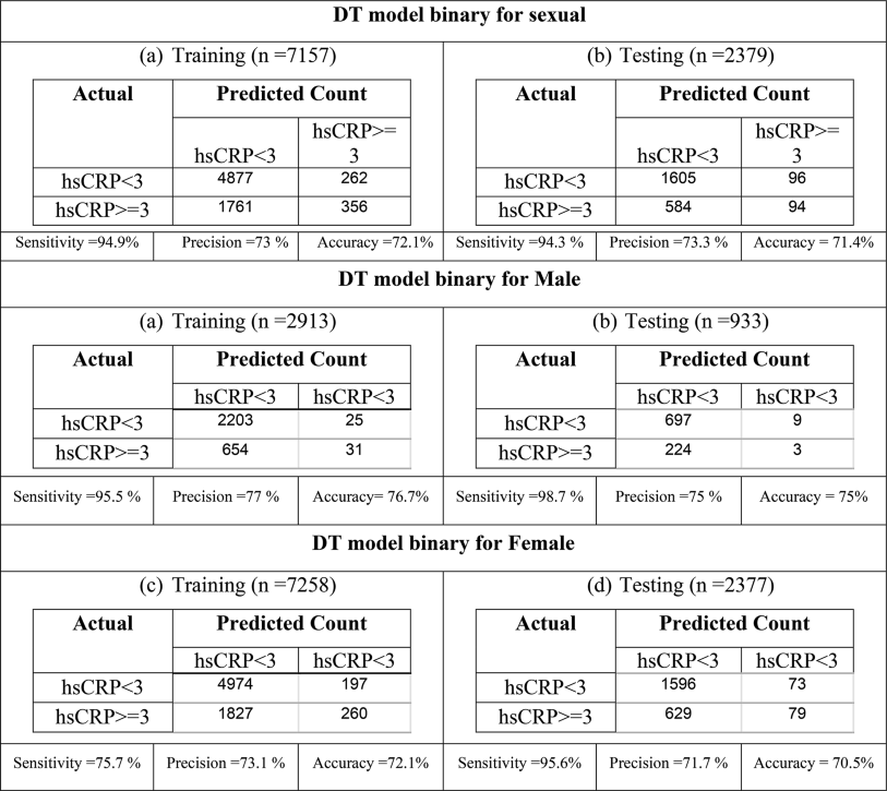Table 5 Performance indices of the DT models with binary hsCRP.