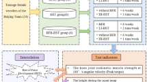 JS is relatively easy to learn; therefore, using JS with various loads is recommended for effectively improving the lower limb F–V relationship13,36,41. However, high impacts at landing with heavy loads has a high injury risk, and electromagnetic braking systems or special training machines that were developed to modify high impacts should be used for injury prevention42,43,44. In contrast, weightlifting exercises can be performed with heavy loads while avoiding an excessive landing impact42,45. Therefore, in absence of special equipment, which is a typical case for coaches and athletes, performing JS using lighter loads (0‒40% 1RM) can be a safe and effective training technique for targeting high-velocity regions. Previous training intervention studies have used JS loads in the 0–40% 1RM range36,37,38. In contrast, HC and HCP using moderate-to-heavy loads (≥ 60% and ≥ 50% 1RMs, respectively) can be performed when targeting a low‒moderate-velocity region of the lower limb F–V relationship (Fig. 7). Therefore, coaches and athletes should understand the advantages and disadvantages of JS and weightlifting exercises, and select the appropriate combination of exercise and load as per the demands of their sports.