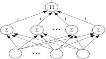 We denote \(W_{0} = [w_{01} ,w_{02} , \cdots ,w_{0Q} ]\) as the weight vector between the \(\sum_{2}\) layer and the \(\prod\) layer, where \(Q\) is defined as the number of nodes of the \(\prod\) layer, and where \(W_{n} = [w_{n1} ,w_{n2} , \cdots ,w_{nP} ,w_{n(P + 1)} ]\) is the \(n - th\) weight vector of the \(\sum_{1}\) layer. The linking weights between the \(\sum_{1}\) layer and the \(\prod\) layer are fixed as 1.