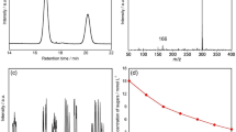To isolate D-arabino-1,4-lactone for MALDI TOF MS and 1H NMR measurements, the following experiments were conducted. The experiments were performed under the same conditions as the TiO2 treatment of D-fructose described above. After 144 h of UV irradiation, all the reaction solutions were filtered through a 0.22 μm nylon filter to remove TiO2 from the suspension. Multiple batches of the reaction solution were collected and concentrated using a rotary evaporator. D-arabino-1,4-lactone was isolated using HPLC. The column used was Sugar-D (250 mm × 4.6 mm, 5 μm particle size, COSMOSIL), and the mobile phase was 75% acetonitrile/25% water (v/v) at a flow rate of 1.0 mL min− 1 at 30 ºC. Erythrose and glyceraldehyde were labeled with ABEE using the concentrated solution and then isolated by HPLC. The column used was a CAPCELL PAK C18 (150 mm × 4.6 mm, 3 μm particle size, SHISEDO), and the mobile phase was 87% ammonium acetate solution (20 mmol L− 1) and 13% acetonitrile (v/v) at a flow rate of 1.0 mL min− 1 at 40 °C.