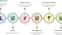 In this study, none of the stretching methods (SS, DS, or PNF) significantly affected jumping or balance performance. This result contradicts the widely accepted notion that SS and PNF stretching typically impair jumping ability34,35,36, whereas DS may be beneficial11,12. However, some studies have reported findings that are consistent with ours8,13. The reduction in strength and power observed following acute stretching is often attributed to impaired neural output and changes in MTU mechanical properties9. Behm et al.25 found that the extent of performance impairment is closely related to stretch duration, particularly when each muscle group is stretched for more than 60 s, which may negatively affect vertical jump, sprinting, maximal voluntary contraction, muscular strength endurance, balance, and reaction time. Notably, athletes who undergo long-term flexibility training may be more resistant to SS-induced power decrements. Donti et al.37 found that in adolescent gymnasts, neither a single 90-second SS nor a 3 × 30-second intermittent SS resulted in significant CMJ height reductions. A recent meta-analysis by Yu et al.38. also observed that gymnasts did not experience jumping or that strength performance declined after SS. In contrast, technical movements that rely on flexibility could be enhanced by SS, potentially due to adaptive changes in the MTU induced by long-term flexibility training. Moltubakk et al.39 further confirmed that compared to non-stretched individuals, professional ballet dancers exhibited greater compliance and ROM in the gastrocnemius tendon unit. This adaptation suggests highly flexible individuals may experience smaller torque reductions following stretching40. This indicates that athletes with long-term flexibility training may maintain muscle-tendon unit tension and energy storage capacity more effectively after acute stretching, thereby avoiding performance impairments due to stretching-induced MTU stiffness reductions.