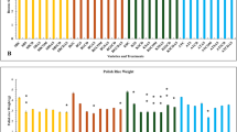 Black rice, being a potent source of anthocyanin which imparts a master role in inflammation and cholesterol reduction18. In this study, no significant difference was observed between the two black rice varieties for anthocyanin content (Table 2) indicating that the improved black rice possess similar nutritional profiles as that of traditional black rice. The phenolic compounds are also known as antioxidants and are likely to have functional effects against oxidative damage and associated with reduced risk of chronic diseases such as diabetes and cardiovascular diseases19. Unpolished BPT 2841 rice variety showcases a total phenol content of 238.17 mg/100 g and an antioxidant activity of 110.5 mg AAE/100 g, which is beneficial for neutralizing free radicals and enhancing human immunity (Table 2). Flavonoid content was highest in BPT 2841 ( 566.66 mg/100 g) followed by Burma black ( 495.19 mg/100 g) and non pigmented BPT 5204 (144.4 mg/100 g). Total antioxidant activity (AOA) and total flavonoid contents (TFC) are higher in colored rice genotypes when compared with non pigmented varieties20 which is in confirmation with the present findings. If the consumer prefers to add the unpolished BPT 2841 rice in diet, the total nutrition will be available, but for improving the palatability, minimum polishing of 1–2% is needed for any rice. Hence, the antioxidant activity of BPT 2841 was estimated for 2% polished rice also. The results revealed that after 2% polishing also BPT 2841 recorded 98.71 mg/100 g AOA while Burma black had 70.98 mg/100 g AOA. The difference in AOA content of two black rice varieties at 2% polishing may be attributed to the loss of pericarp in Burma black when compared with BPT 2841. Even during dehusking process, the pericarp of Burma black has slightly removed while the pericarp is tightly intact in case of BPT 2841. The 2% polished BPT 2841 rice will be cooked as normal white rice without soaking and no extra time and water needed for cooking. The health effects of antioxidants present in colored rice suggest potential uses of the cereal anthocyanins for positive human nutrition21 and these colored rice reduce atherosclerotic plaque by 50% more than white rice in rabbits22. BPT Rice 2841 recorded 36.75% slowly digestible starch and a glycemic index of 62.5, placing it in the medium GI range. The widely recognized glutinous desi black rice variety, Burma black, has a glycemic index of 65.8. Furthermore, the population-specific glycemic response can be influenced by genetic, dietary, and metabolic factors, which necessitates region- or ethnicity-specific evaluations23.