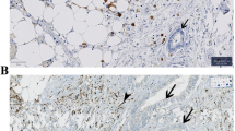 Tissue blocks were freshly cut into 4-µm sections, fixed on slides, and dried at 37 °C for 12 to 24 h. Slides were treated in a PreTreatment module (Agilent Dako, CA, USA) with a pH 9 retrieval solution (Envision Flex target retrieval solution, DM828, Agilent Dako) for 15 min at 98 °C for antigen retrieval. We stained sections with Autostainer 480S (LabVision Corp. Fremont, CA, USA) using Dako REAL EnVision Detection System, Peroxidase/DAB + , Rabbit/Mouse. First, we treated slides with Envision Flex peroxidase-blocking reagent SM801 for 5 min to block endogenous peroxidases. The antibodies and dilutions used for IHC staining appear in Supplementary Table 1. Subsequently, all slides underwent a 30-min incubation period with a peroxidase-conjugated EnVision Flex/HRP (SM802) rabbit/mouse (ENV) reagent. Slides were visualized using DAB chromogen (EnVision Flex DAB, DM827) for 10 min. Mayers hematoxylin (S3309, Dako) was used for counterstaining.