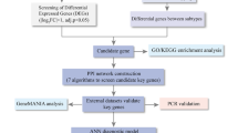 To further understand the regulatory interactions between biomarkers and presumably other genes, a gene–gene interaction (GGI) network was created with the gene multivariate integrated network inference algorithm (GeneMINIA) database (http://genemania.org/). Thereafter, with KEGG as background gene set, clusterProfiler and org.Hs.eg.db package (v 3.15.0)36 were employed to conduct a single-gene Gene Set Enrichment Analysis (GSEA) of the biomarkers to investigate their potential involvement in functional pathways (|NES|> 1, NOMP < 0.05, q < 0.25). Next, chromosomal localization was executed via RCircos (v 1.2.2)37 to check the biomarker gene localization. Simultaneously, the biomarkers were further assessed for subcellular localization using the RNALOCATE database (http://www.rna-society.org/rnalocate/). In order to investigate the functional similarities between the biomarkers, GOSemSim (v 2.28.0)38 was implemented for investigation.