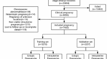 The secondary outcome were positive hCG rate, biochemical pregnancy rate, implantation rate (IR), ectopic pregnancy rate, early miscarriage rate, late miscarriage rate, ongoing pregnancy rate, preterm birth rate and term birth rate. We defined a positive pregnancy test as β-hCG > 10IU/L. Biochemical pregnancy was defined as a very early spontaneous abortion after a positive pregnancy had been determined and with a fall in serum β-hCG concentration before the ultrasonic detection of gestational sacs. IR refers to the number of gestational sacs observed divided by the number of embryos transferred. Ectopic pregnancy was defined as any extrauterine implantation, including heterotopic pregnancies.