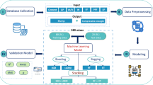 Furthermore, more recent research efforts have contributed to the development of concrete prediction models towards sustainable construction13. focuses on optimizing sustainable concrete containing fly ash, considering both mechanical and environmental factors. It is relevant because waste glass aggregates (WGA) are often used as a sustainable material, and optimizing mechanical properties is a key aspect of data-driven modeling14. uses artificial neural networks (ANNs) to evaluate the compressive strength of recycled aggregate concrete. Since WGA concrete is another type of sustainable concrete, the methodology in this study can be applied to predict its mechanical properties using machine learning15. assesses the global warming potential of fly ash-silica fume concrete while optimizing compressive strength. The life cycle assessment approach can be useful in evaluating the environmental benefits of WGA concrete16. Similar to15, this study optimizes green concrete containing fly ash and rice husk ash based on hydro-mechanical properties. The methods used for optimizing mechanical properties may be adaptable to WGA concrete17. develops an innovative predictive model for the flexural strength of recycled aggregate concrete. Since flexural strength is an essential mechanical property, its modeling approach could be beneficial for WGA concrete predictions18. applies AI-based mix design optimization for fly ash-admixed concrete, considering mechanical and environmental impacts. The AI-driven framework can be extended to WGA concrete to enhance predictive accuracy19. develops a GRG-optimized response surface model to optimize concrete compressive strength based on industrial waste materials. WGA is an industrial waste precursor, making this research highly relevant to predictive modeling for WGA concrete20. investigates the effects of fly ash and blast furnace slag on high-performance concrete. Understanding the impact of supplementary cementitious materials can support the optimization of WGA concrete properties21. focuses on AI models for predicting the stiffness and deformation of geopolymer-treated soil, which is different from WGA concrete but provides insights into AI applications in material property prediction22. examines heat and mass transfer in different concrete types, including self-compacting and geopolymer concrete. This thermal analysis could be extended to WGA concrete to study its thermal performance23. applies machine learning to predict the unconfined compressive strength of geopolymer cement-treated granular sand. While not directly related, the methodology could be adapted for WGA concrete strength prediction24. reviews the durability aspects of basalt fiber-reinforced concrete. Understanding durability factors could help assess the long-term performance of WGA concrete25. applies multiple AI models to predict the compressive strength of recycled aggregate concrete. The techniques used here can be directly applied to WGA concrete26. studies the influence of alkali molarity on the strength of geopolymer concrete using machine learning. The AI techniques used can be adapted to predict the strength of WGA-based geopolymer concrete27. uses machine learning classification to predict the flexural strength of metakaolin-admixed concrete. Similar methodologies could be applied to WGA concrete28. applies ensemble ML and symbolic regression techniques to predict the splitting strength of metakaolin-admixed concrete. These advanced ML techniques could enhance the accuracy of WGA concrete property predictions29. discusses data utilization and partitioning in machine learning for civil engineering applications. This knowledge is crucial for effectively applying AI-based frameworks in WGA concrete property predictions.