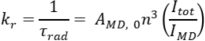 The radiative rate constant (kr) is proportional to the intensity ratio of total integrated emission of the 5D0 → 7FJ transitions (Itot) to the integrated emission of the 5D0 → 7F1 transitions (IMD). AMD,0 (14.65 s–1) is the spontaneous emission probability of the 5D0 → 7F1 transition and n is the refractive index of the medium.