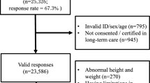 The data were obtained from a population-based online questionnaire survey, the Japan COVID-19 and Society Internet Survey (JACSIS 2023). Participant recruitment was conducted through Rakuten Insight, a commercial research agency with a panel comprising approximately 2.2 million individuals from the Japanese population. Participant selection was stratified by sex, age, and geographic region. The initial target sample size was set at 28,000 participants; however, a total of 33,000 individuals participated in JACSIS 2023, with 29,268 providing eligible responses. The comprehensive data collection included measures of socioeconomic indicators, occupational factors, health-related measures, physical and mental health, quality of life, smoking habits, alcohol use, lifestyle behaviors, and other health-related behaviors26. Participants younger than 20 years old were excluded from the current analysis, resulting in a final sample size of 27,149 individuals. Supplemental File Table 3 shows the distribution of the participants per prefectures in Japan. All methods were carried out in accordance with relevant guidelines and regulations.