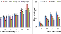 Combined modes of irrigation methods (direct irrigation with brackish water, alternating irrigation with brackish water and fresh water, drip irrigation), brackish-water treatment techniques (magnetized water-treatment, desalination, solar desalination, and electrodialysis technologies), and supporting management measures (surface cover, soil conditioner) can improve the growth and yield of crops such as cotton, wheat, goji berries, watermelons, tomatoes, lettuce, rice, and grapes3,16,18,19,20,31,32. For example, Mu et al. found that inoculation with H. crustuliniforme substantially enhanced the salinity stress resistance of L. japonica33; Hu reported L. japonica to exhibit adaptive abilities in low salt-stress environments, though with increased salt concentration and prolonged stress, photosynthesis and growth were inhibited34; and He et al. reported drought stress to inhibit photosynthesis, and to induce more serious photoinhibition and oxidative stress than iso-osmotic salt stress15. However, little is known of how L. japonica responds to brackish-water irrigation, limiting the use of this species for water-saving and efficient agricultural use of saline–alkali land in the Yellow River Delta.