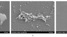 Our research found that the two crude extracts were generally better for Gram-negative biofilm treatments. The destruction against biofilms of S. putrefaciens showed higher values (Fig. 2) compared to the other biofilms. However, both crude extracts could destroy Gram-positive biofilms as well. The numerical bioassay data were confirmed visually with microscopy (Table 2). Positive control images showed much higher violet area, which indicated the presence of biofilm. SEM figures also showed the destruction of biofilms (Fig. 3). Under the treatment of either crude extract, the cells were found to be more scattered, suggesting the destruction of biofilms.