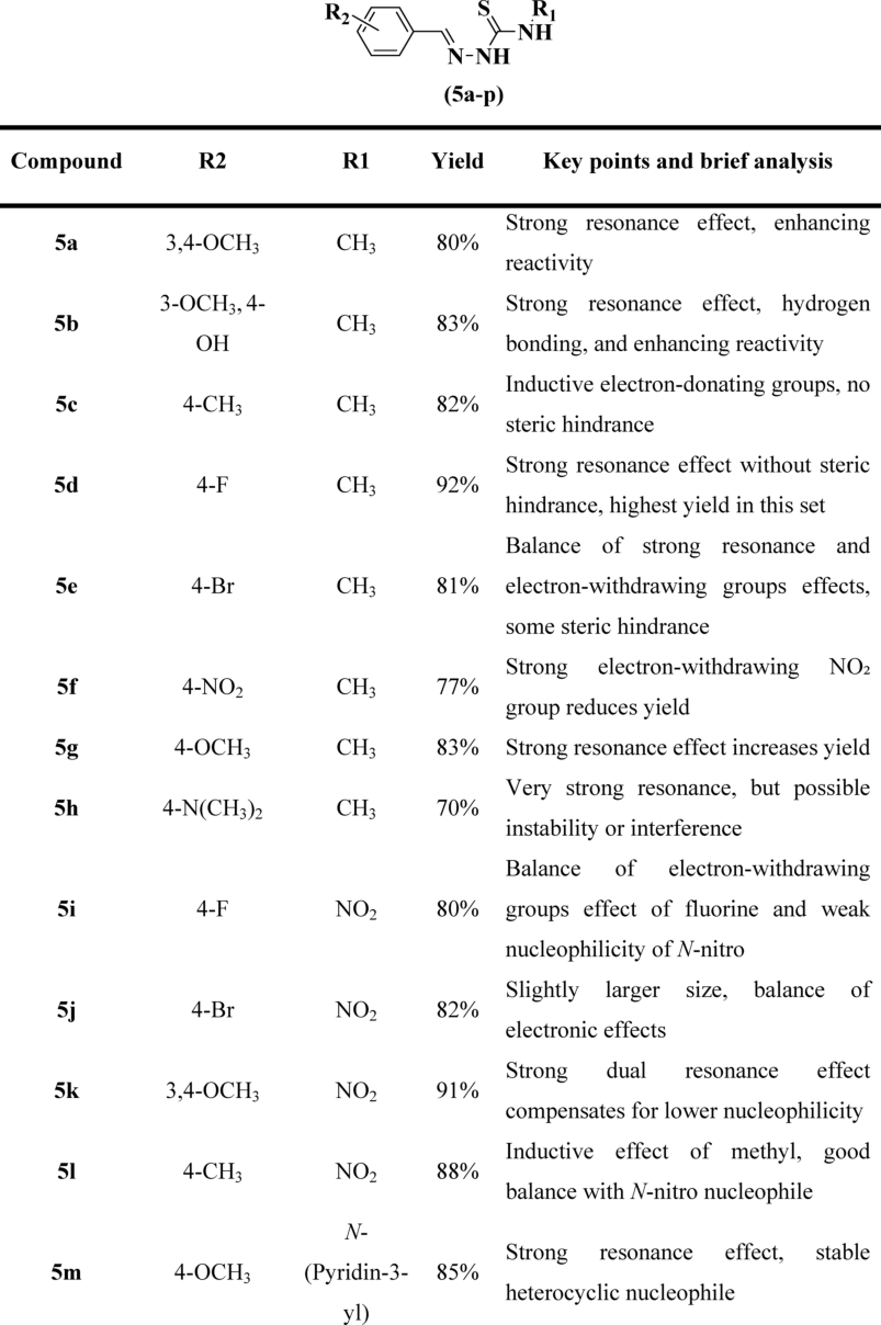 Table 1 Comprehensive structural of thiosemicarbazone Schiff base compounds and yields.