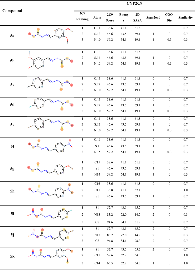 Table 3 For isoform 2C9, the three atoms with the highest metabolic priority of analogues.