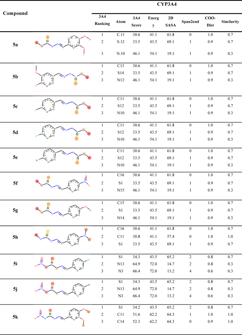 Table 4 For isoform 3A4, the three atoms with the highest metabolic priority of analogues.