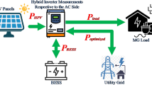 The energy system considered consists of a photovoltaic (PV) array, a battery energy storage system (BESS), residential loads, and inverters that connect the microgrid to the utility grid. Inverters convert DC from the PV and BESS into AC for local consumption, or convert grid-supplied AC to DC to charge the battery or meet EV charging demand. Residential loads can be supplied by PV generation, battery discharge, or grid electricity. The chosen topology represents a widely adopted and scalable solution for residential and commercial microgrids. Its relevance is confirmed by prior research on energy management4,5,6,7 and industrial competitions8. This architecture supports high renewable integration, bidirectional power flow, and flexible demand-side control, while its modular and cost-efficient design enables practical deployment in sustainable energy systems. At each time step t, the control system receives inputs such as electricity price, forecasted PV generation and load, and equipment parameters. Based on this, the algorithm computes the next battery state of charge \(SoC(t+1)\) and sends optimized commands to the controller. The microgrid architecture is illustrated in Fig. 1, with the system model and equipment specifications detailed in Sect. 1.