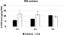 According to the graph shown in Fig. 6, the highest H2O2 concentrations after adding CdSO4 to the cell suspensions occur at 1, 3, and 5 h. Each peak in H2O2 concentration can indicate an oxidative burst at the respective CdSO4 concentration. Conversely, the minimum H2O2 concentrations at 2 and 4 h likely correspond to periods wherein the cells gradually recover equilibrium, as these concentrations are the same as or very close to those for the control, 0.16 µmol L−1 H2O2 (Fig. 6a).