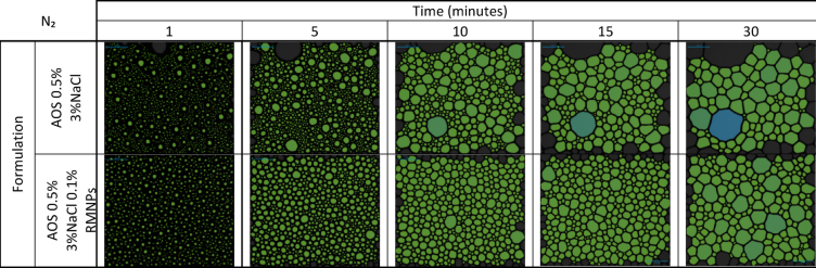 Table 5 Structure of foam generated by 3%-NaCl-based solutions and N2 injection with and without RMNPs.