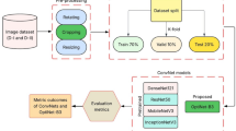 where \(\theta\) (with relevant subscripts) represents the learnable parameters of each module within the Detectron2 pipeline: the Region Proposal Network (\(\theta _{\text {RPN}}\)), the ROI pooling layer (\(\theta _{\text {ROI}}\)), and the Mask Head (\(\theta _{\text {Mask}}\)). We initialized the segmentation model with a pre-trained mask_rcnn_R_101_FPN_3x checkpoint from the Detectron2 Model Zoo, enabling effective transfer learning for BLB severity segmentation. Furthermore, the model was adapted for multiclass semantic segmentation, configured to predict five classes corresponding to the five severity stages of BLB. This design effectively integrates features at the image and region levels, improving the model’s ability to discern subtle differences between severity stages. Table 4 provides the detailed hyperparameter settings. The segmentation output serves as rich spatial and contextual input to the classification task, enabling precise severity analysis.