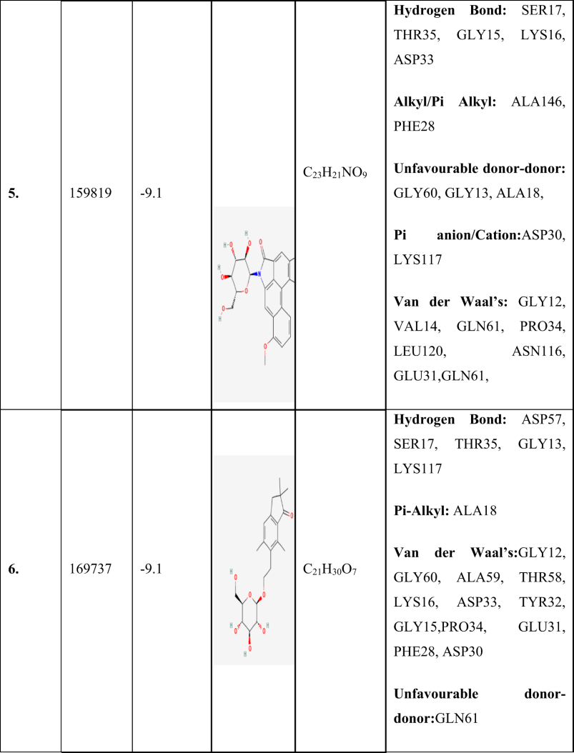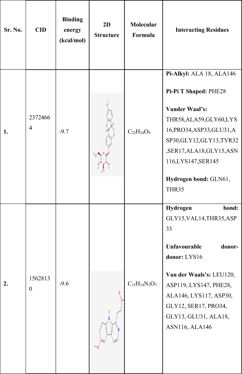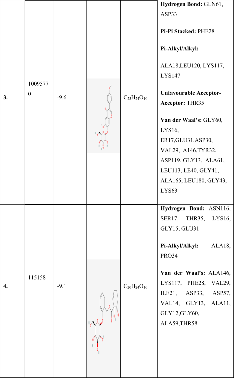 Table 3 Compounds selected after docking with KRAS (arranged in order of increasing binding energies).