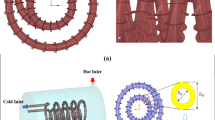 Shell and tube heat transfer systems are the most widely used types in high-pressure industrial and commercial fields5. To promote efficiency, geometrical parameters are optimized including changing the appearance of the heat exchanger, adding more inserts in the tube and redesigning the baffles on the shell side6. Plate fin heat exchangers have been extensively used in the commercial genre of heat exchangers because of their compactness, flexibility, maintainability, greater surface area to volume ratio and greater heat transfer performance compared to the shell and tube heat exchangers7. Various kinds of inserts have been employed in the heat exchangers8, such as plate fins9,10,11, interleaved fins12, cylindrical fins13,14 and needle fins15,16. Besides, the shape and size of the flow path and the obstructions significantly affect the heat exchange performance17. Corrugated or modified surface can effectively increase the heat transfer area and improve flow turbulence, but it can also induce intricate fluid flow due to formation of swirling patterns and recirculation zones18.
