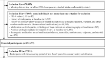 Subjects who smoked at least 1 cigarette per day with continuous smoking for more than 6 months were defined as current smokers. Daily alcohol consumption was calculated as the volume of alcohol consumed per day (g) × alcohol concentration (%) × 0.822. Subjects with alcohol consumption > 0 g ethanol/day were defined as drinkers. The self-reported physical activity frequency was classified as inactive, occasional, often (> 1 time/week), and daily. BMI was calculated as weight divided by the square of height (kg/m2). WC was measured at the midpoint between the lower border of the rib cage and iliac crest, and central obesity was defined as a waist circumference ≥ 90 cm in men and ≥ 85 cm in women23. Hypertension was defined as systolic blood pressure of ≥ 140 mm Hg and/or diastolic blood pressure of ≥ 90 mm Hg and/or a history of antihypertensive medication and/or a self-reported history of hypertension. Diabetes was defined as a fasting blood glucose concentration ≥ 7.0 mmol/L, and/or a history of antidiabetic medication, and/or a self-reported history of diabetes.