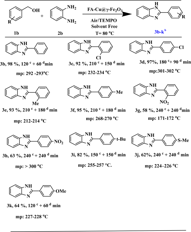 Table 5 Synthesis of benzimidazole derivatives from benzyl alcohols and 1,2-phenylenediaminesa.