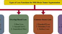 where \({\mu }^{k}\) is the weight of the \({k}^{th}\) class, which is inversely proportional to each class’s average size. \({\left(1-{P}_{i}^{k}\right)}^{\gamma }\) is the modulating factor which weighs less on easy samples (voxels), whose prediction confidence \({P}_{i}^{k}\) is close to 1. In our experiment, \(\gamma\) is set as 2. In our work, the combination of \({L}_{1}\) and \({L}_{2}\) is used as the total loss of the whole stage.