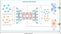 Similarly, given the adjacency matrix \(\varvec{D}\) and initial features \({\varvec{H}}_{d}^{(0)} \in \mathbb {R}^{N_d \times N_d}\) in disease similarity network \(G_d\), we employ GCN and GAT to capture multi-level node representations \(\varvec{H}_{d}^{(1)}\), \(\varvec{H}_{d}^{(2)}\) and \(\varvec{H}_{d}^{(3)}\) of diseases by Eq. (16):