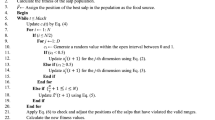 The distance between both load demands is recovered by adding or subtracting a slice (slc) that is a portion of dist in a random generator unit with respect to its range value. This process is repeated until \(dist =0\). Note that the inequality constraints are satisfied and checked during the generation process. All solutions (i.e., population of salps) are stored in an augmented matrix in the salps Chain Memory (\(\textbf{SCM}\)) of size \(gn \times N\) as shown in Eq. 11. Each raw in \(\textbf{SCM}\) represents an ELD solution where the total number of solutions is equal to N. Using the repair algorithm presented in Algorithm 1, the viability of each solution is guaranteed. The cost of each ELD swarm is calculated using Eq. 1. The target food source is normally known and is called \({\textbf {F}}\). In case the target is not known, the best global food source in \(\textbf{SCM}\) is considered as \({\textbf {F}}\). The leader salp (\(U^1\)) is at the front of the salp chain. The rest of the salp solutions in the salps chain are called the followers (i.e., \(\{U^2,U^3, \ldots , U^N\}\)).