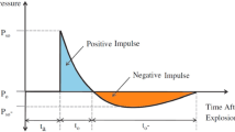 In recent years, many scholars have carried out a lot of work on the failure mode and dynamic response of reinforced concrete members under blast loading5,6,7. Kyei et al.8 carried out the explosion test and numerical simulation analysis of full-scale reinforced concrete column and studied the influence of different structural measures on the blast-resistant performance of reinforced concrete columns under explosion load. Wang Wei9 conducted a series of explosion tests of reinforced concrete beams and slabs, and analyzed the influence of scaled distance, size effect and reinforcement form on the dynamic response of reinforced concrete members. On this basis, the damage degree of components is evaluated, and the P-I curves of different components under different parameters are obtained. Wu Wenyan et al.10 analyzed the damage factors of reinforced concrete columns under explosive load. The effects of five damage factors, such as explosive equivalent, stirrup reinforcement ratio, concrete strength, standoff distance and longitudinal reinforcement ratio, on the dynamic response of column damage were studied by numerical simulation. Xuekang Guo et al.11established a validated LS-DYNA model for reinforced concrete shear wall substructures under internal explosions, explored effects of TNT locations and masses on blast waves and structural responses, found perpendicular TNT shift amplified loads on farther walls, and proposed an efficient simplified uniformly distributed overpressure model with small prediction errors. Yang Yunkai et al.12 studied the influence of different charge parameters on the damage law of reinforced concrete columns under explosion load through the combination of experiment and simulation. Li Chen et al.13 studied the effects of axial load ratio, scaled distance, charge diameter-length ratio, column length ratio, longitudinal reinforcement ratio and transverse reinforcement ratio on the failure characteristics and residual axial bearing capacity of columns. Under this premise, an empirical formula for predicting the damage degree of reinforced concrete columns under double-ended initiation considering both charge shape and column axial load ratio was obtained. Jun Li et al.14 studied the spall failure phenomenon of reinforced concrete columns under blast load through the three-dimensional finite element model of reinforced concrete columns. According to the data obtained from numerical simulation, the empirical formula for predicting the spall failure of columns by column size and steel mesh was obtained. Shi et al.15 established a numerical analysis model of reinforced concrete columns considering bond-slip between steel bars and concrete, and verified the validity of the model based on the classical scale frame explosion test. On this basis, the failure mode of reinforced concrete columns under explosion load was studied, and the influence of different influence parameters on its dynamic response was analyzed. Yan Qiushi et al.16 established a coupled analysis model of explosive-air-concrete columns, and the applicability of the model was verified by existing experiments. Through this model, the failure mode of subway station columns under explosive load is studied, and the damage assessment method of subway station columns based on bearing capacity is proposed. The damage of subway station columns is divided into different damage levels, and the damage of typical subway station columns under different explosives is evaluated. In addition to the air explosion scenario, Zhou et al.17used the ALE method to study the dynamic response and damage of pier columns under underwater explosion, and verified the model. A four-level damage assessment method based on residual bearing capacity was proposed, and a pier collapse risk vulnerability model containing 350 kg explosive was established.
