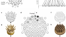 We conducted a paired t-test to compare each time–frequency bin during visual stimulation against the average for each frequency over the baseline period (Fig. 5b). To identify statistically significant changes in brain activity during visual stimulation, we employed cluster-based permutation statistics41. This method captures significant activity changes regardless of their specific time or frequency localization. Clusters were defined as neighboring bins in the time, frequency, and sensor space, with a test statistic greater than a given threshold. The notion of neighborhood was based on both the sensor adjacency matrix and direct proximity in time and frequency. We set the cluster forming threshold to 1.28, corresponding to the 90th percentile of the standard normal distribution. Sensitivity analyses confirmed that this threshold had minimal impact on the overall analysis (data not shown). To determine the significance of the clusters, we computed the permutation distribution of the cluster-level statistics, specifically the maximum absolute value within each cluster, over 1000 permutations. Figure 5c illustrates the significant clusters in the time–frequency domain, with colors indicating the percentage of electrodes contributing to the binary representations at each time–frequency bin. Figure 5d shows the topography of these binary representations, with colors representing the percentage of time–frequency bins contributing at each electrode.