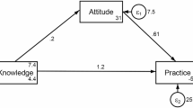 The final version of the questionnaire was in Chinese and consisted of four dimensions with a total of 39 items. The sociodemographic characteristics section included 15 items, the knowledge dimension contained 8 items, the attitude dimension had 8 items, and the practice dimension included 8 items. In the knowledge dimension, questions with correct answers were assigned 1 point for a correct response and 0 points for a wrong or an unclear answer. For the attitude and practice dimensions, a five-point Likert scale was primarily used, ranging from very positive (5 points) to very negative (1 point) based on the level of positivity, resulting in scores ranging from 8 to 40 points. For interpretation purposes, we defined “relatively adequate” knowledge as achieving at least 70% of the maximum possible score in the knowledge dimension, consistent with prior KAP studies that have used similar thresholds for adequate knowledge classification16. In our questionnaire, the maximum possible knowledge score was 8, so a score of ≥ 6 was considered relatively adequate. This threshold allowed for a consistent and literature-based interpretation of participants’ knowledge levels.