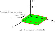 Hydro-semiconductors represent a specialized class of materials wherein the charge carriers (electron–hole plasma) behave as a compressible, viscous fluid, resulting in significant interactions between thermal, optical, and mechanical fields30,31,32,33. This fluid-like behavior introduces additional transport phenomena such as viscosity and inertia, which modify the wave propagation characteristics in ways that differ from conventional semiconductors34,35,36. These materials are of particular importance in high-frequency, high-power, and nanoscale applications, where traditional models fail to capture the intricate dynamics of coupled field behavior37,38,39. When combined with photo-thermoelasticity, hydrodynamic modeling enables a more comprehensive analysis of wave interaction in complex semiconducting environments40,41,42,43,44,45.